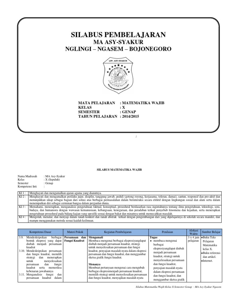 Silabus matematika smp, dirancang agar menjadi pedoman para guru dalam melaksanakan kegitan pembelajaran sesuai dengan tingkatan dan tuntutannya, seperti silabus smp/mts kurikulum 2013 revisi 2017 ini. Silabus matematika smk k13 revisi 2016; Oleh sebab itu, dibutuhkan kelengkapan perangkat pembelajaran terbaru untuk keperluan guru dalam proses ajar mengajar siswa secara daring. Download silabus matematika smp/mts kelas 7,8,9 k13 revisi terbaru. Perangkat pembelajaran silabus matematika k13 kelas 9 smp semester 1 dan 2 revisi tahun 2020 ini masih sangat jauh dari kata sempurna.